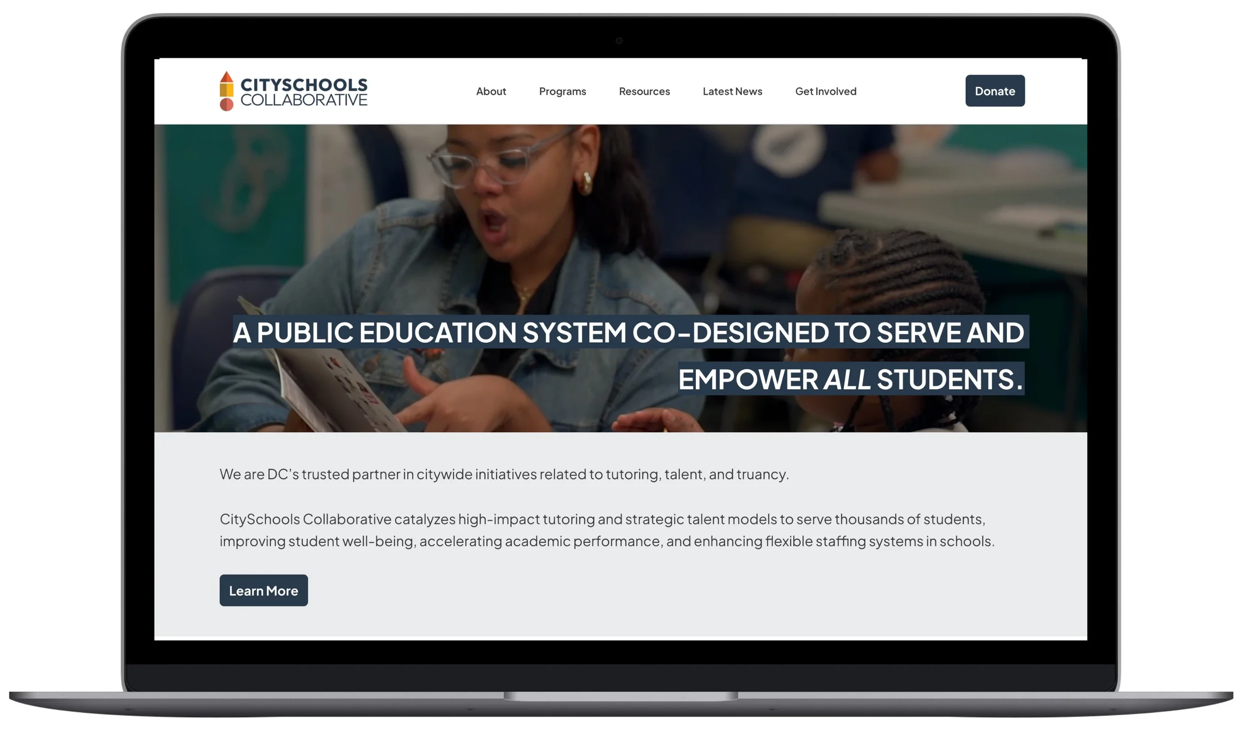 In 2024, CityTutor DC absorbed CityBridge Education; then, a year later, they rebranded as CitySchools Collaborative. Upon relaunch, they once again enlisted Buoy’s support to showcase their new brand.